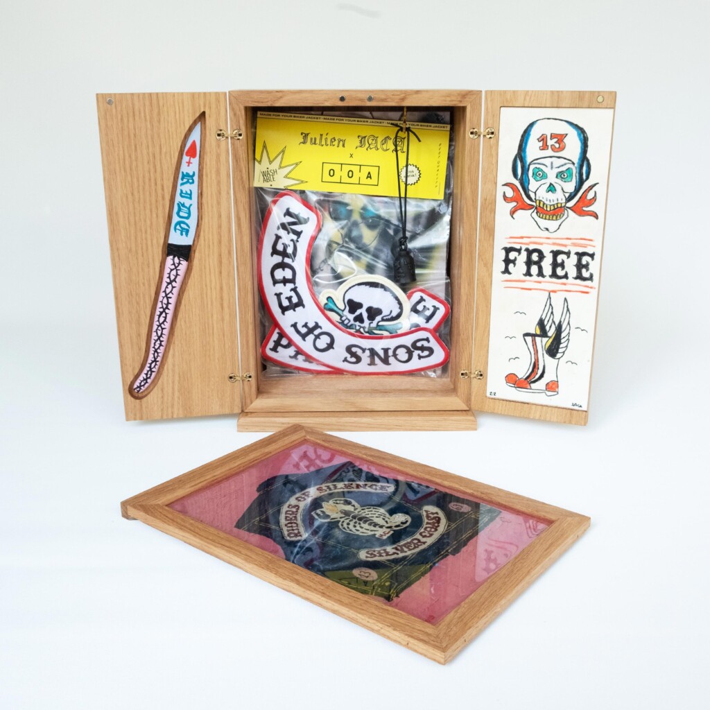 * Hand-painted knife and signed drawing by the artist (all different in each box)